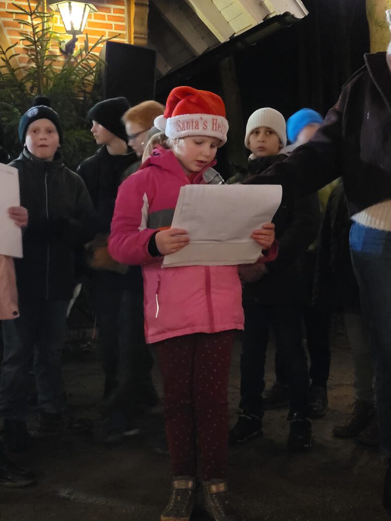 Nachdem der Nikolaus die Kinder begrüßt hatte, sangen die Kinder der Klassen 3a und 3b das Lied “Nikolaus, komm zu uns nach Haus” vor.