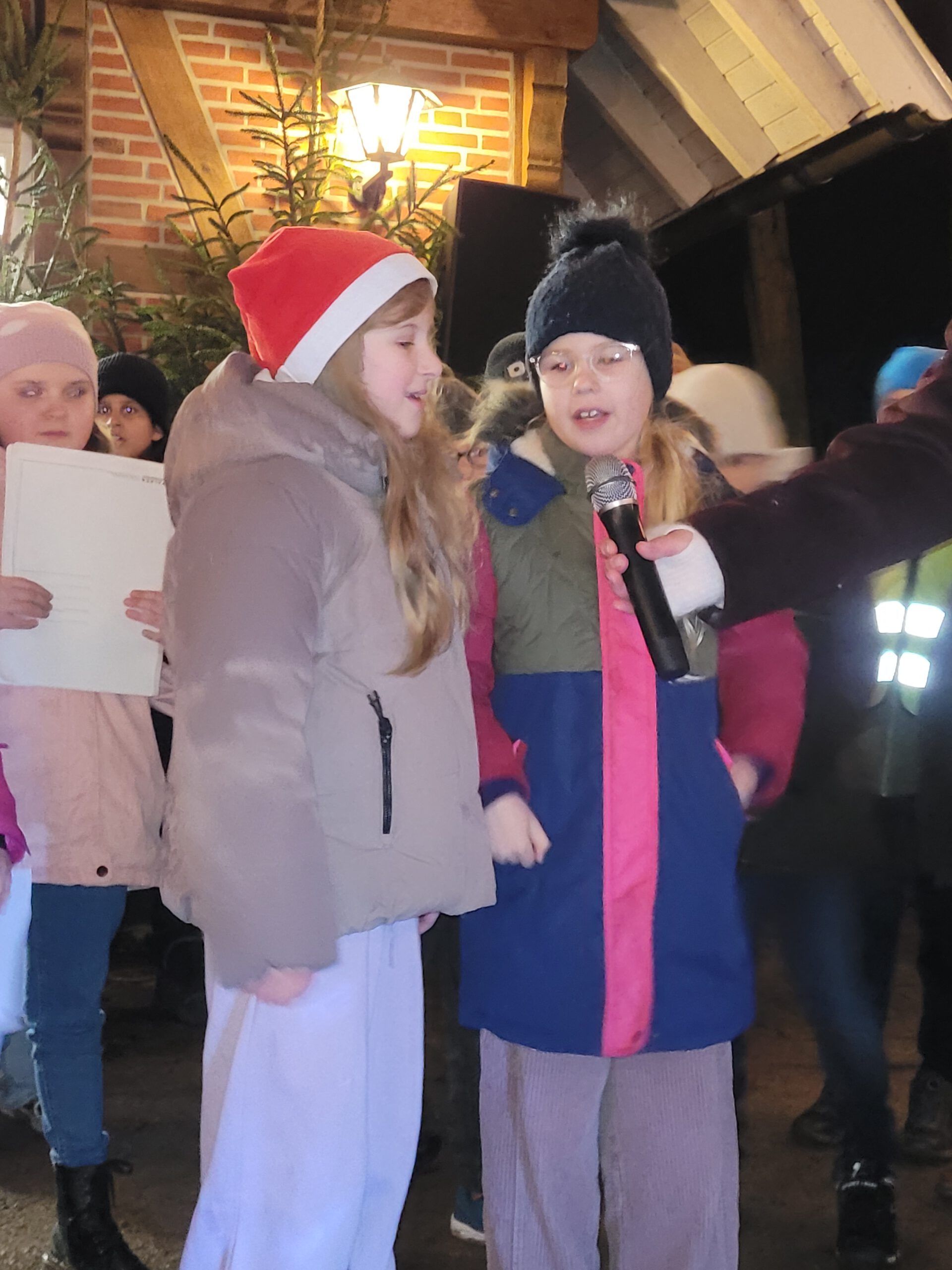 Nachdem der Nikolaus die Kinder begrüßt hatte, sangen die Kinder der Klassen 3a und 3b das Lied “Nikolaus, komm zu uns nach Haus” vor.
